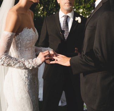 Ring exchange, vows, and first kiss